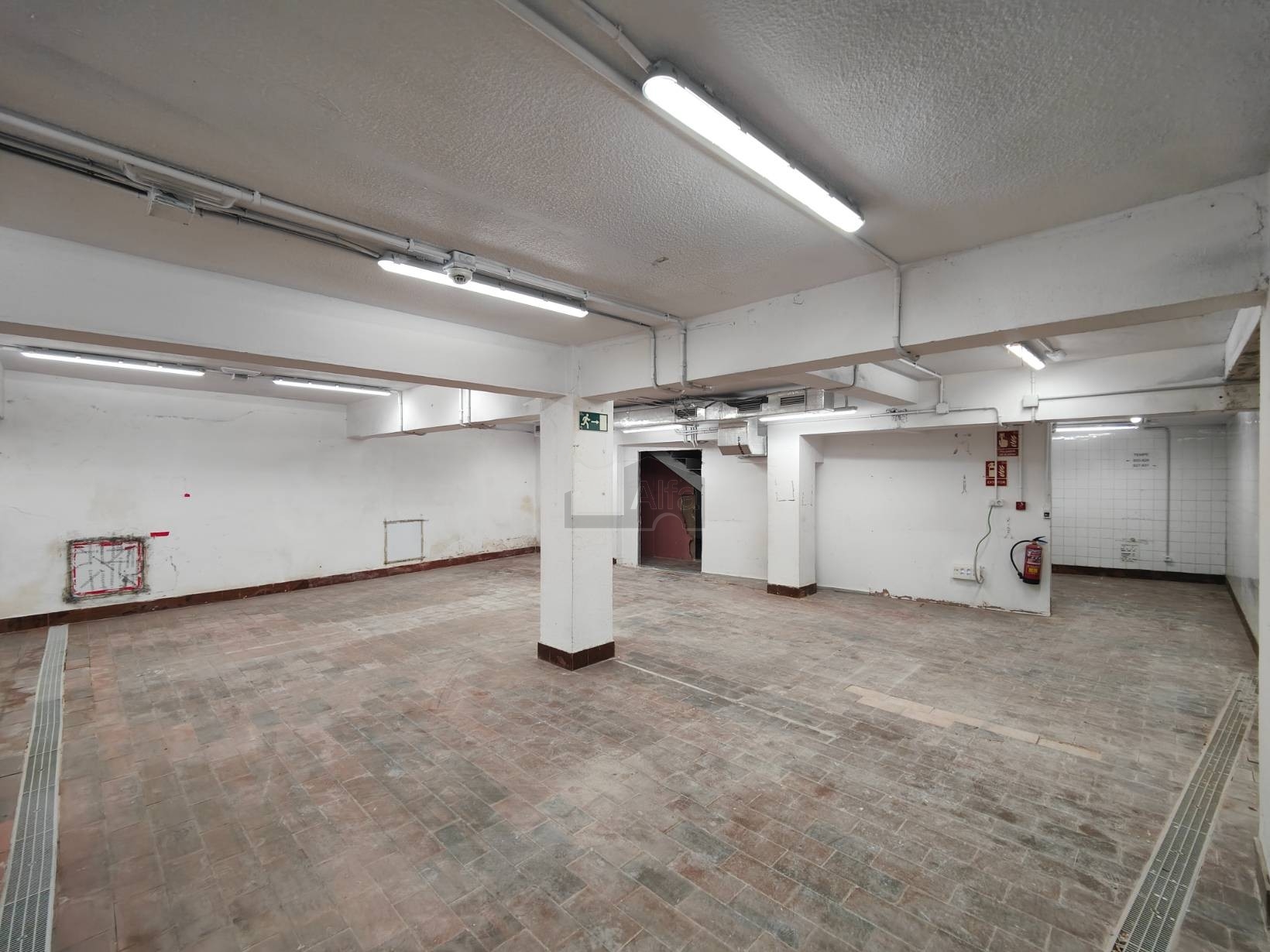 La planta baja y el sótano se comunican mediante una puerta contra incendios.