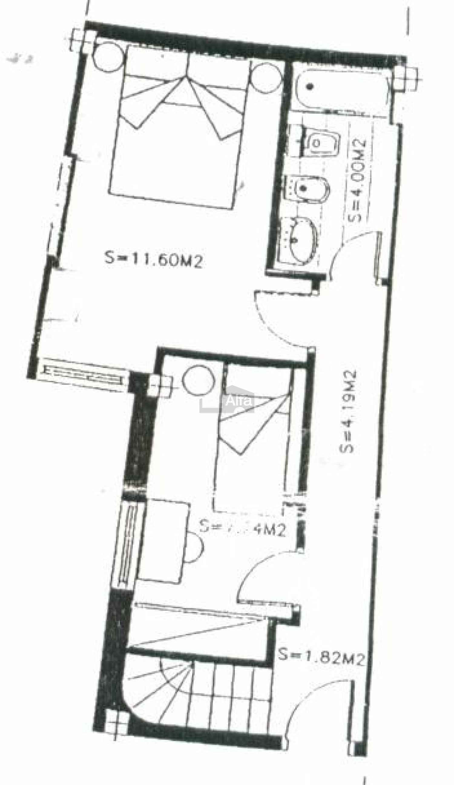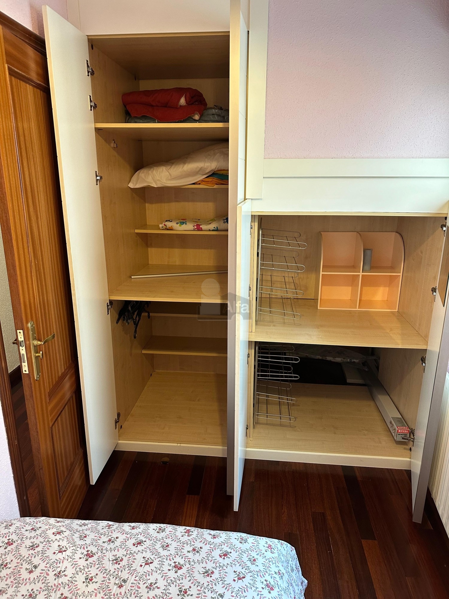 En la planta baja cuenta con dos dormitorios, —uno pequeño individual, con una cama de 0,90 y otro doble con cama de 1.50, ambos con armarios empotrados— y un baño completo.